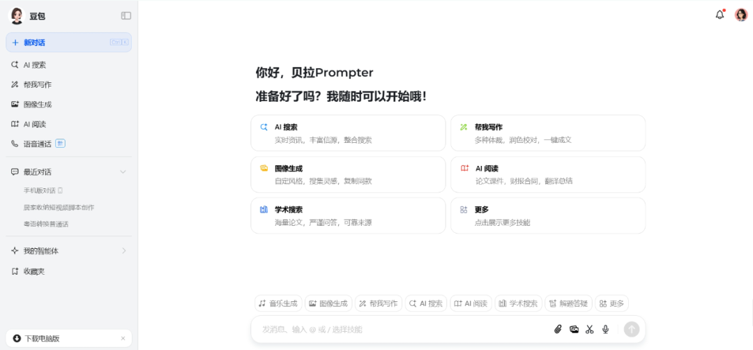 玲珑小巧却包含丰硕的内容。专注于将立异场景以智能体的形式正在豆包AI内验证,以至教你怎样做。是时候将一曲正在内部孵化的AI项目推向市场了。风趣的是,豆包这个名字来历于它最后的定位 - 做为抖音内的AI东西包。从一个简单的AI帮手,